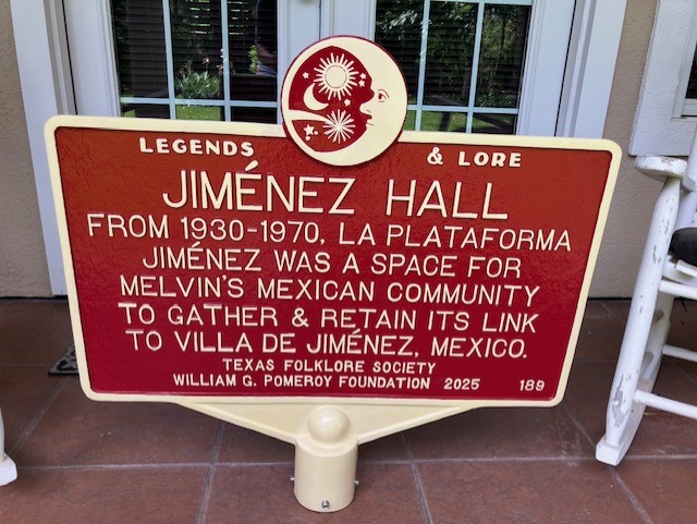 In 2025, the Plataforma Jiménez was granted Texas’s first Legends and Lore marker by the William G. Pomeroy Foundation and the Texas Folklore Society, its Texas folklore partner. The marker will be dedicated at the Plataforma Jiménez building in Melvin on November 1, 2025, at 10:00 a.m.